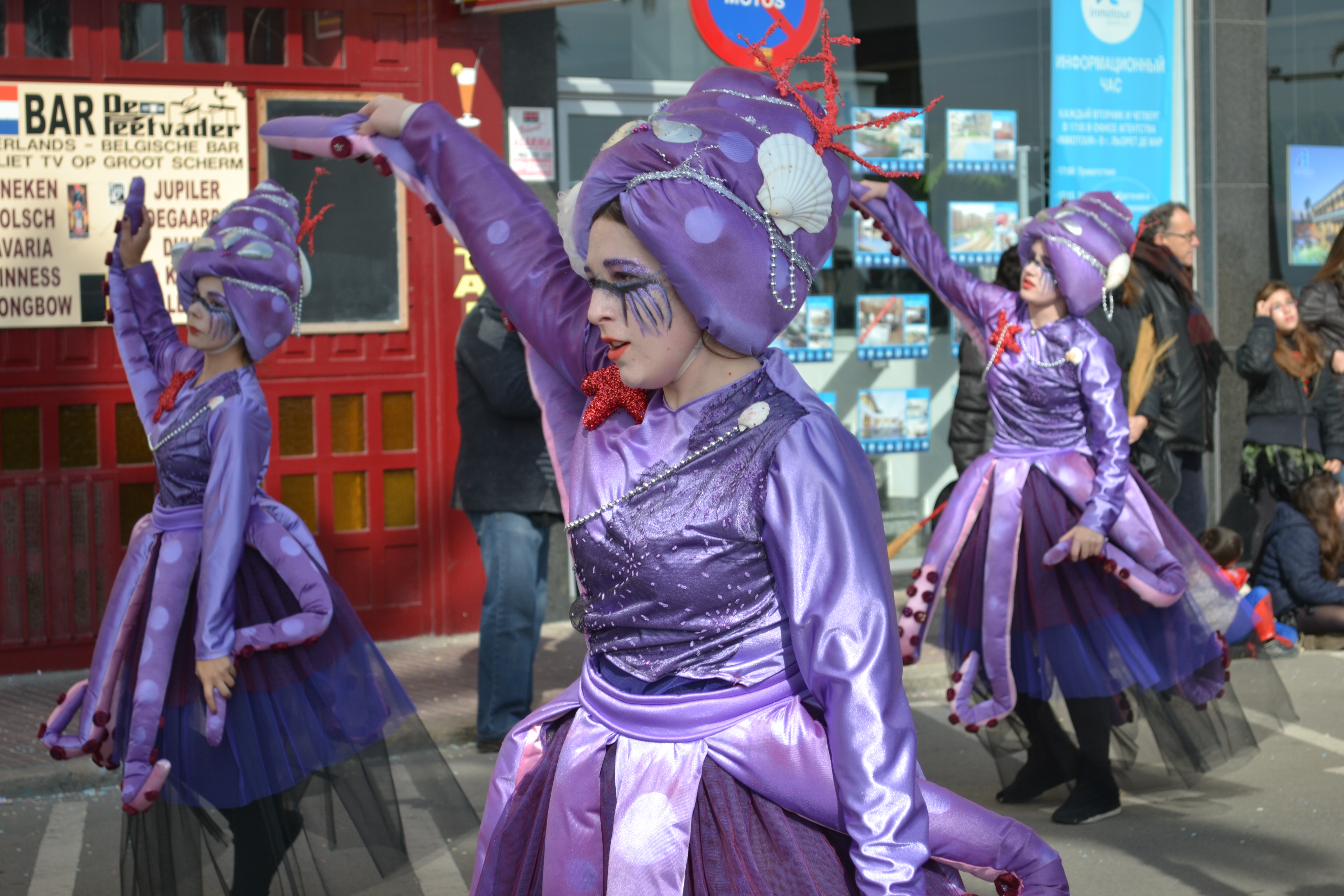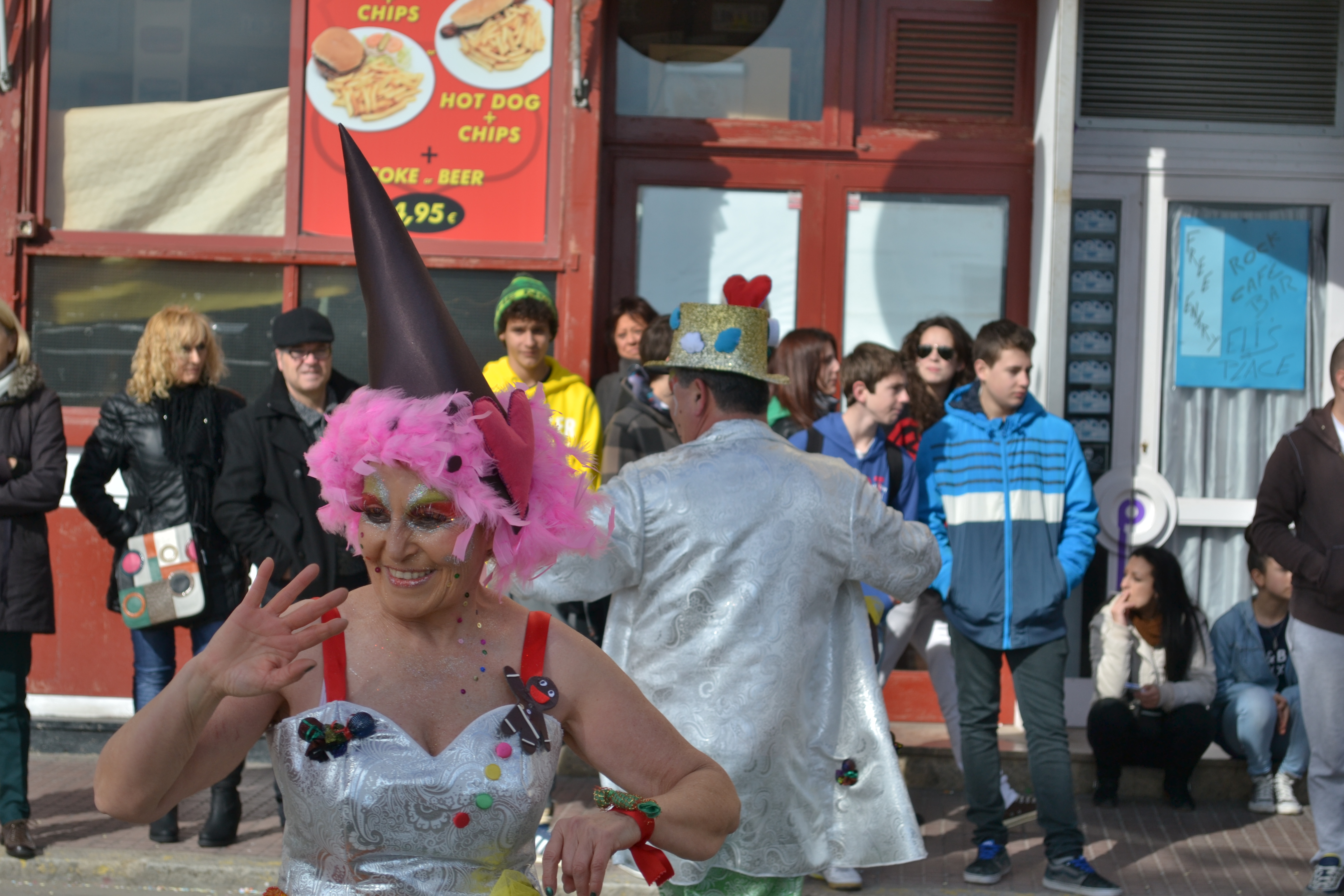 Today, we enjoyed watching all the fun of Carnival in Spain.  Carnival is celebrated all over Europe (and of course, Brazil) where each country puts their own twist to the celebration   It is a wonderful celebration of family and community.  We saw all ages dancing and singing through the streets, it was great! The different towns compete for the best costumes, dance choreography, and floats.  Tough competition this year in Lloret de Mar.  We felt very lucky to be part of this great tradition!